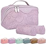 Travel Makeup Bags Cosmetic Organizer Bag: 3-Set Large Capacity Make up Bag – PU Leather Toiletry Bag for Women – Wide Open Portable Pouch with Divider & Handle (01-Z-Light Purple)